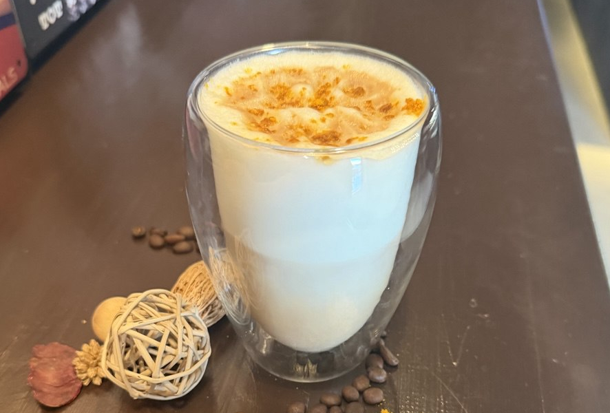 Молоко ультрапастеризованное, эспрессо, куркума (порошок), сироп "Кленовый лист"